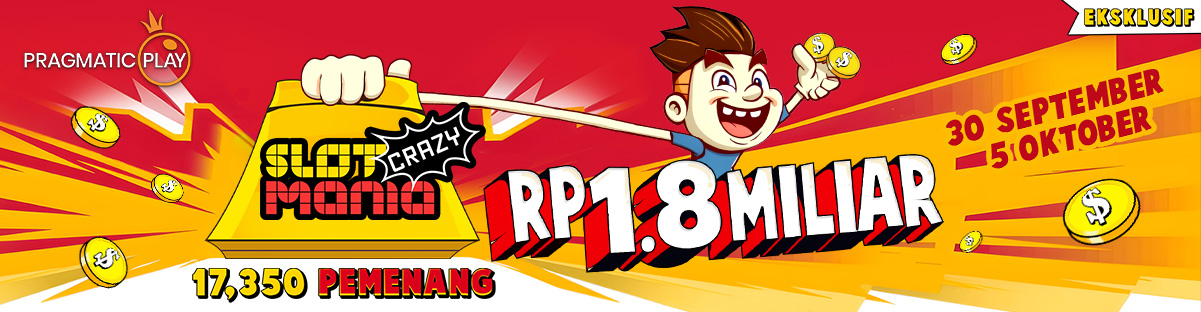- Harian Turnamen Crazy SLOT MANIA oleh Pragmatic Play berhadiah sebesar RP 900.000.000 dan akan dibagikan di kepada 5,700 pemain teratas yang memiliki skor tertinggi di papan peringkat.